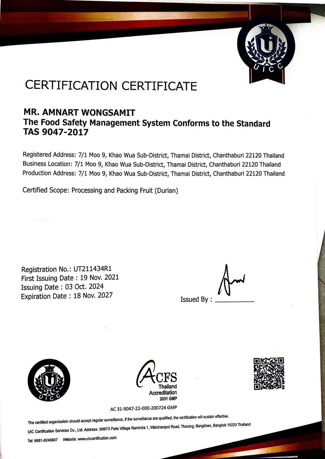 ดำเนินธุรกิจทุเรียนเพื่อการส่งออกมายาวนานตั้งแต่ปี พ.ศ. 2561 โดยเริ่มจากการให้บริการ รับแพ็คกล่องทุเรียน สำหรับตลาดจีน พร้อมทีมงานที่มีประสบการณ์ด้านการคัดเกรดและควบคุมคุณภาพทุเรียนระดับมืออาชีพ